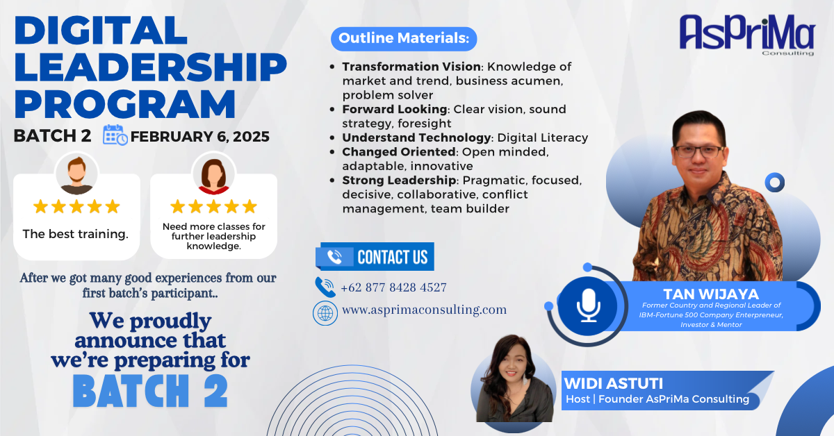 For more information please contact: Friska +62 877 8428 4527 say@www.asprimaconsulting.com